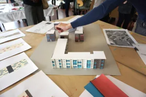 Um das Areal am Olvenstedter Grund in einem neuen Bild erstrahlen zu lassen, haben wir einen Studentenwettbewerb ins Leben gerufen. Ziel war es, den unvoreingenommenen und innovativen Blick junger Talente zu nutzen, um ein einzigartiges Farbkonzept für Wohnimmobilien zu schaffen. Rund 200 Studierende nahmen an dem Projekt teil und präsentierten über 30 Modelle.